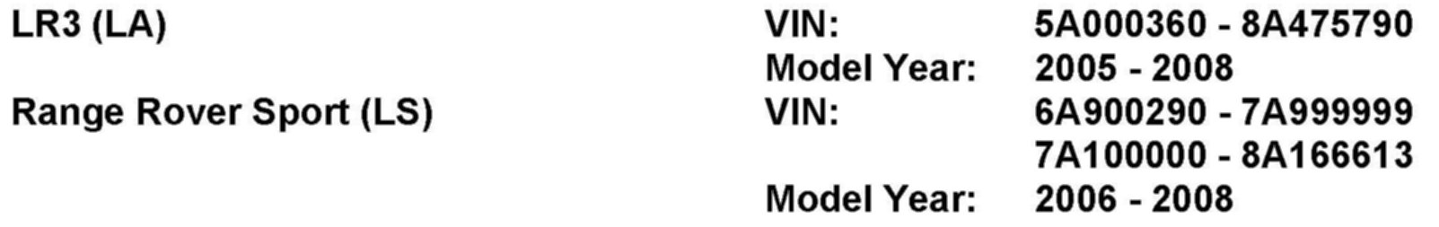 AFFECTED VEHICLE RANGE