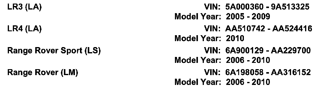 AFFECTED VEHICLE RANGE