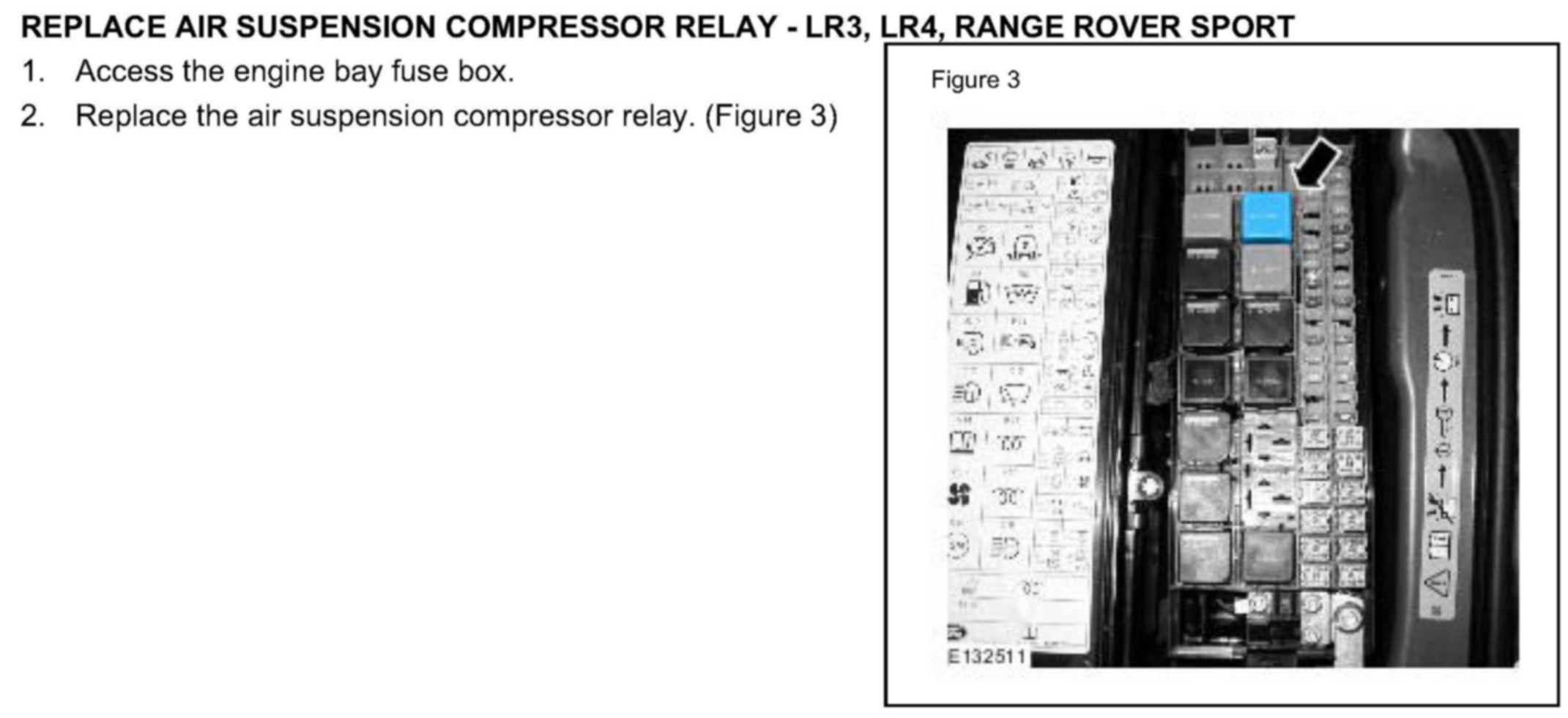 REPLACE AIR SUSPENSION COMPRESSOR RELAY - LE3, LR4. RANGE ROVER SPORT