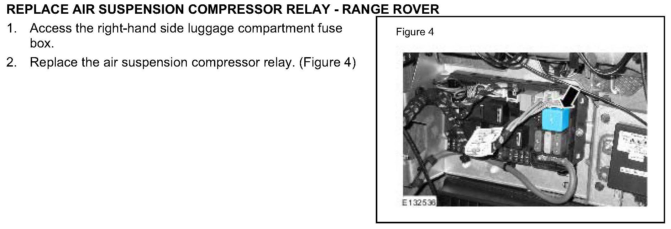 REPLACE AIR SUSPENSION COMPRESSOR RELAY - RANGE ROVER