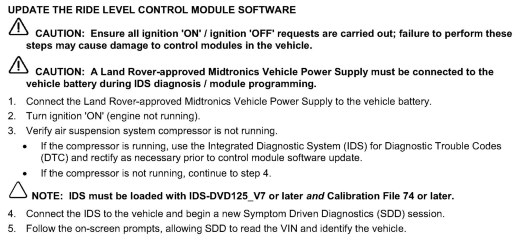 UPDATE THE RIDE LEVEL CONTROL MODULE SOFTWARE