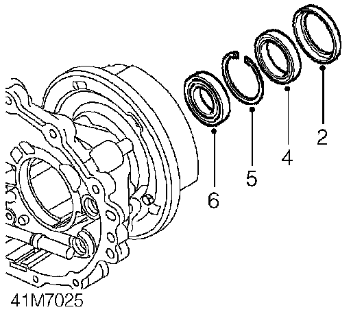 5. Remove circlip retaining rear output shaft bearing to rear casing.