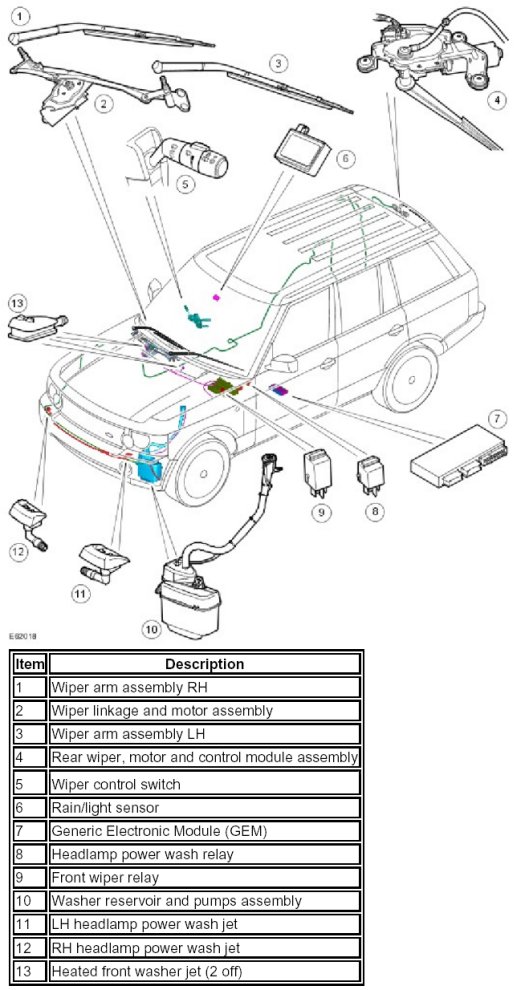 Diagnostic information for the wiper system is available and can be retrieved using the Land Rover approved diagnostic system.