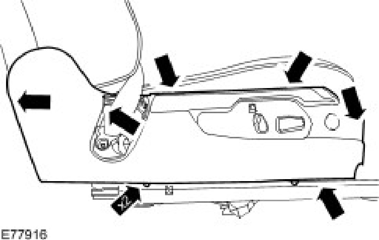 1. Carefully release the clip from behind the front seat base side trim panel.