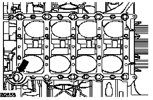 2. Apply a 2 mm (0.08 in.) bead of sealant to the cylinder block in the areas shown.
