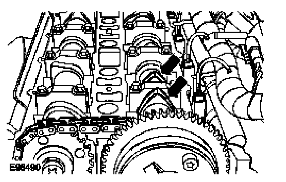 CAUTION: Make sure that number 2 cylinder exhaust camshaft lobes are vertical to the cylinder head face.