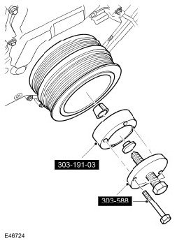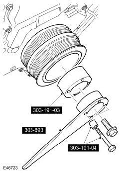 4. Using the special tools, retain the crankshaft pulley.