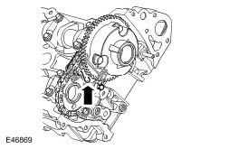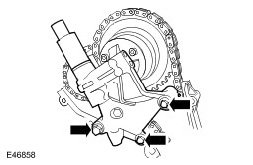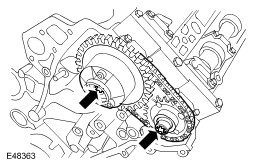 4. Install the LH secondary timing chain tensioner and chain to the camshaft sprockets.