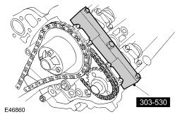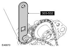 CAUTION: Using the special tool, apply force to the tool in a counter-clockwise direction, to tension the primary timing chain on its drive side.