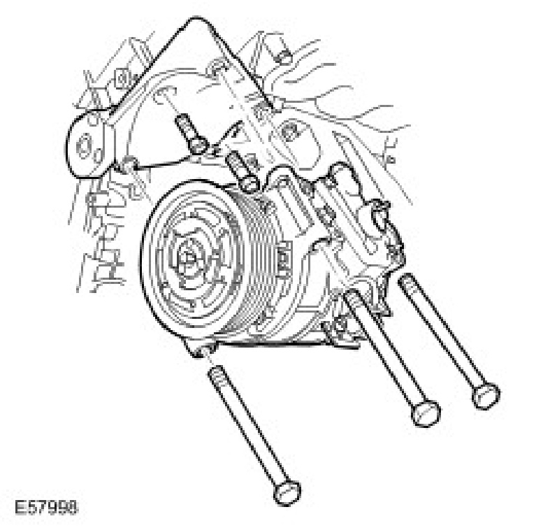 NOTE: 1 A/C compressor bolt will remain captive until the mounting bracket is removed.