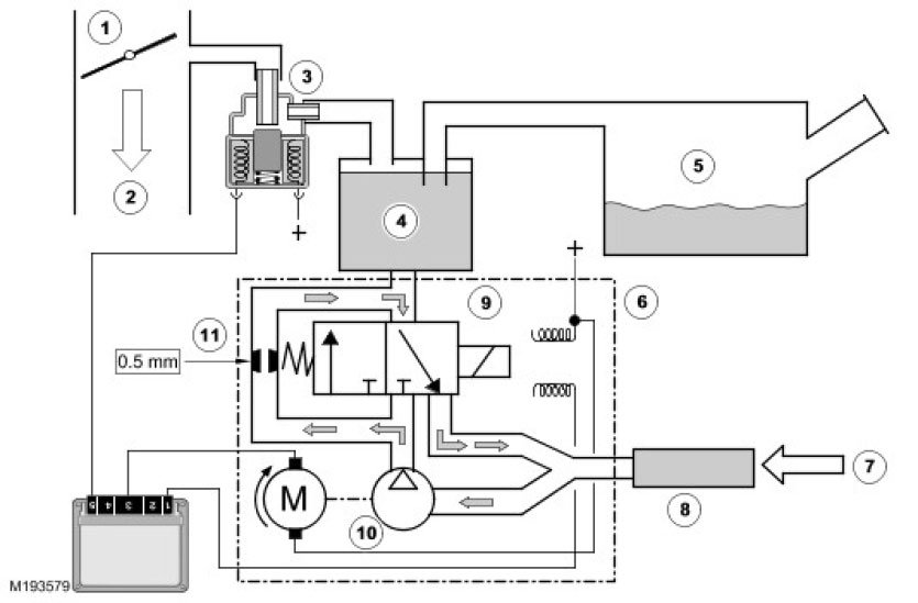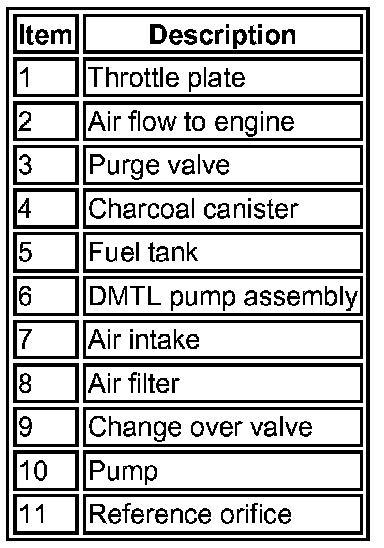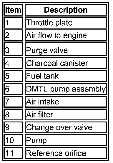 When the ECM activates the DMTL system, it first activates only the DMTL pump motor. This pumps air through a 0.5mm reference orifice which causes the electric motor to draw a specific amperage value. This value equates to the size of the reference orifice.