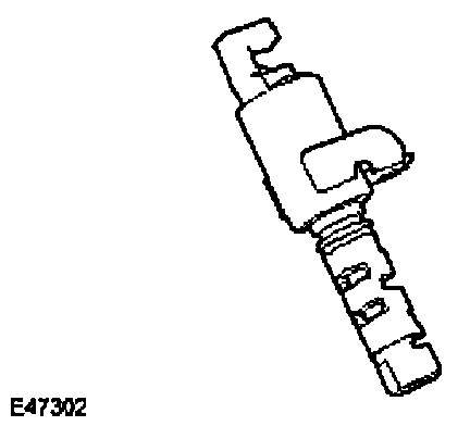 The valve timing solenoid controls the position of the shuttle valve in the bush carrier. A plunger on the solenoid extends when the solenoid is energized and retracts when the solenoid is de-energized.