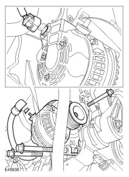 ^ Install and tighten the generator upper fixing bolt, before the lower bolts.