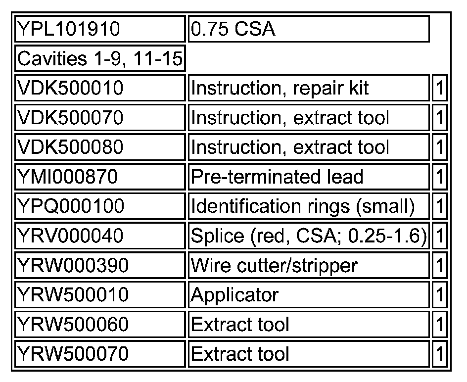 In addition to the items included in the harness repair kits, part harnesses are also available to effect repairs on the vehicle. These part harnesses are available through the normal parts ordering process.