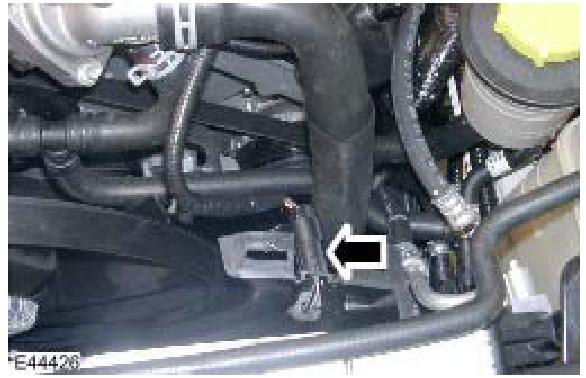 ^ Release the coolant hose bracket.