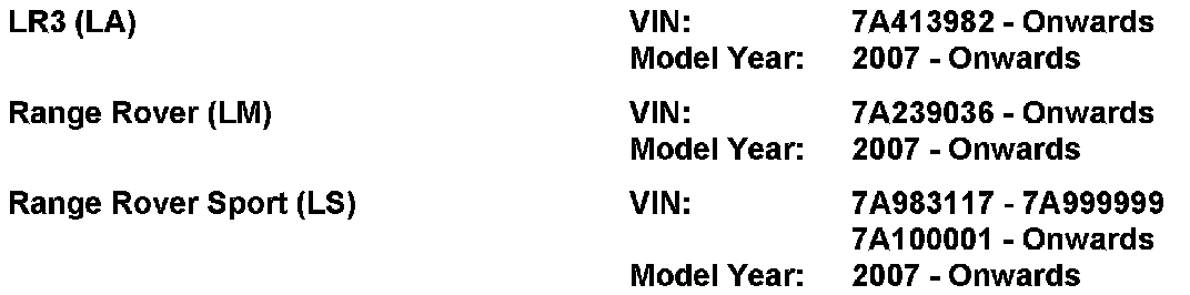 AFFECTED VEHICLE RANGE