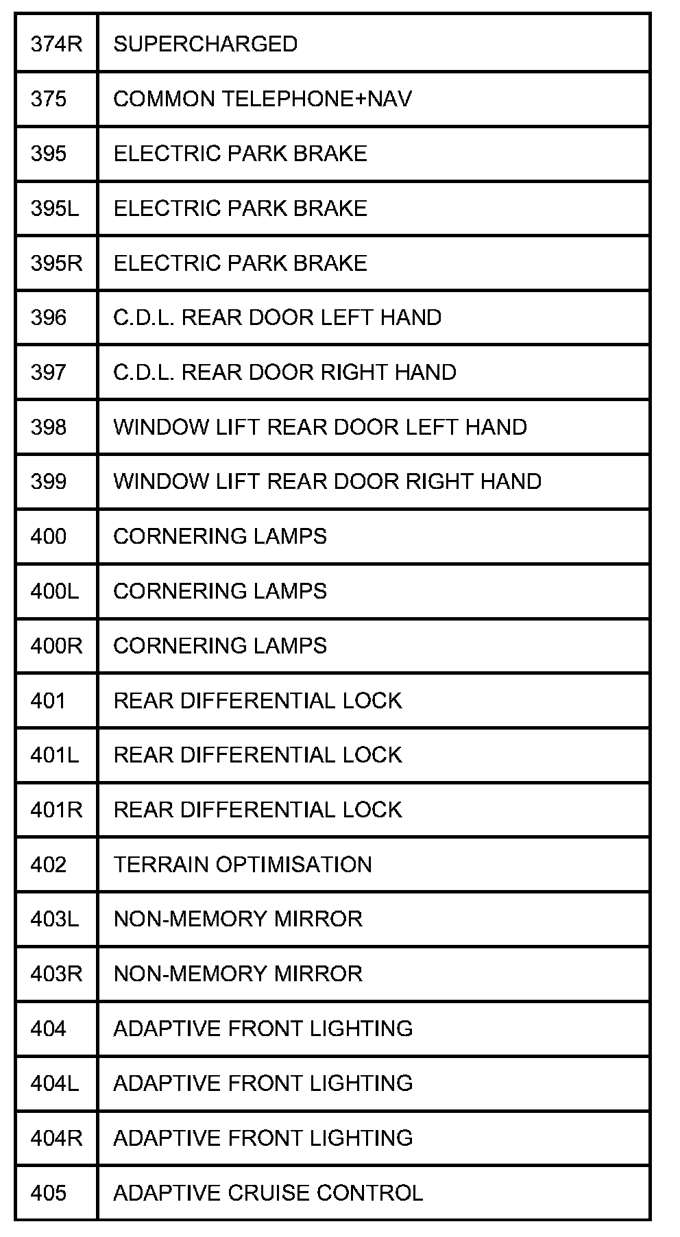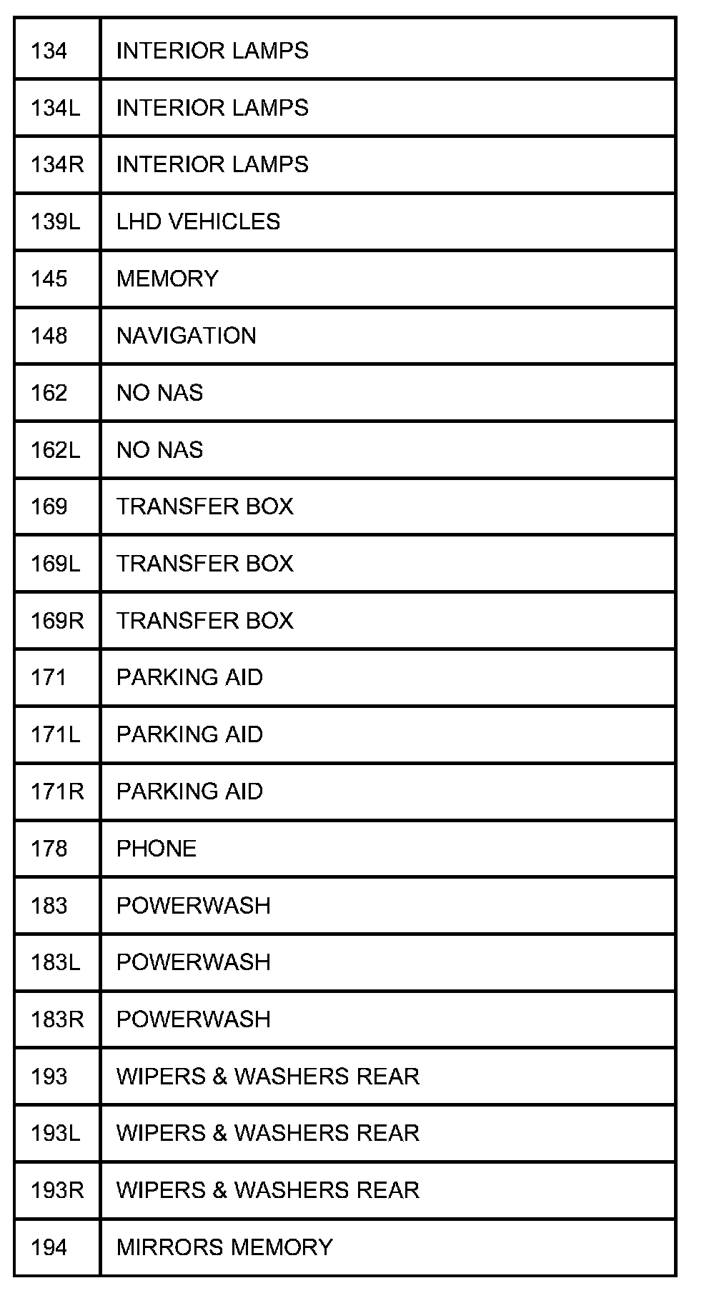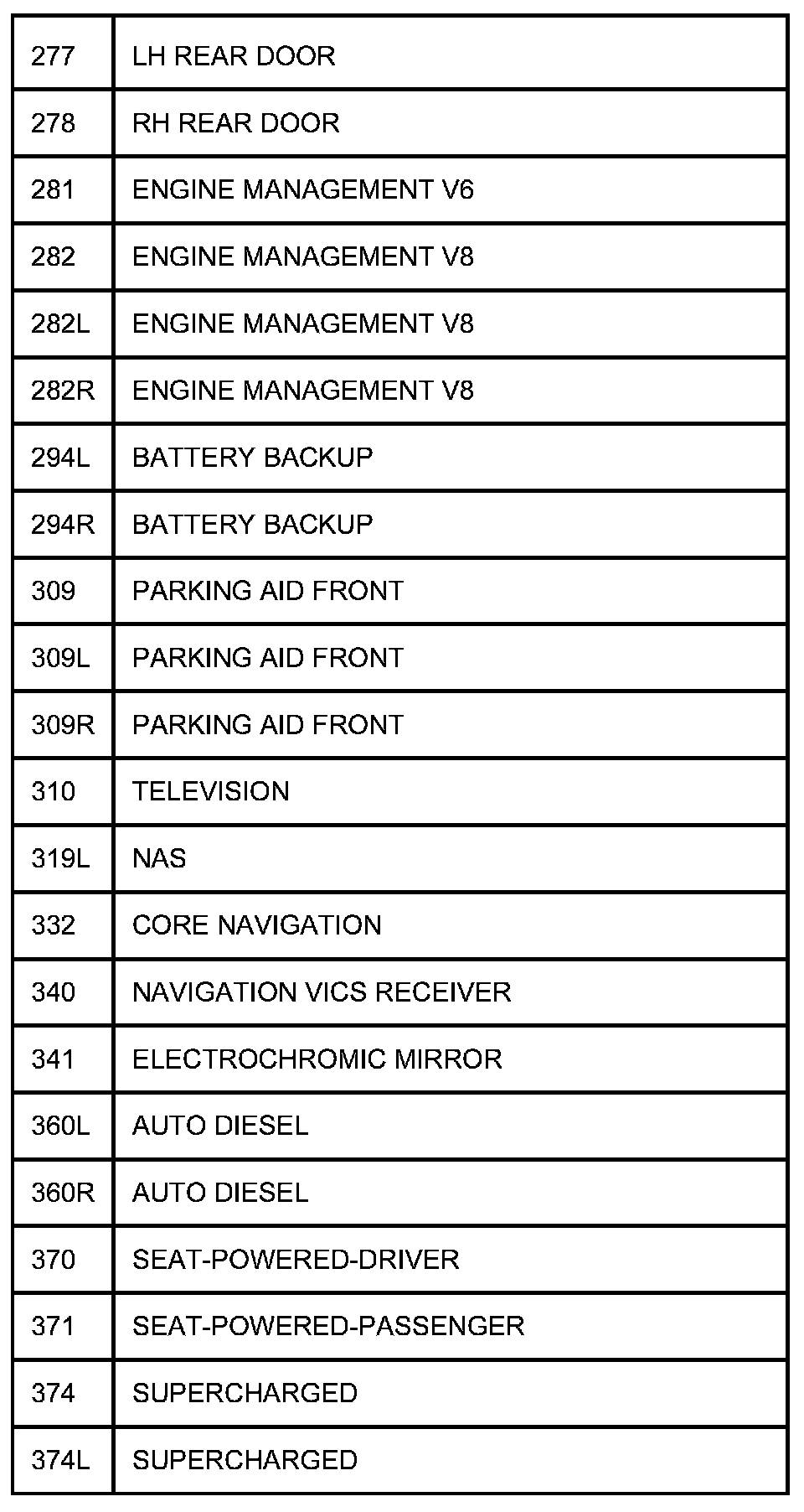 The following table contains a list of circuit (Cct) reference numbers against a description of the applicable model or option. This information should be used in conjunction with the connector pin-out tables to determine the wire configuration of the vehicle under test.