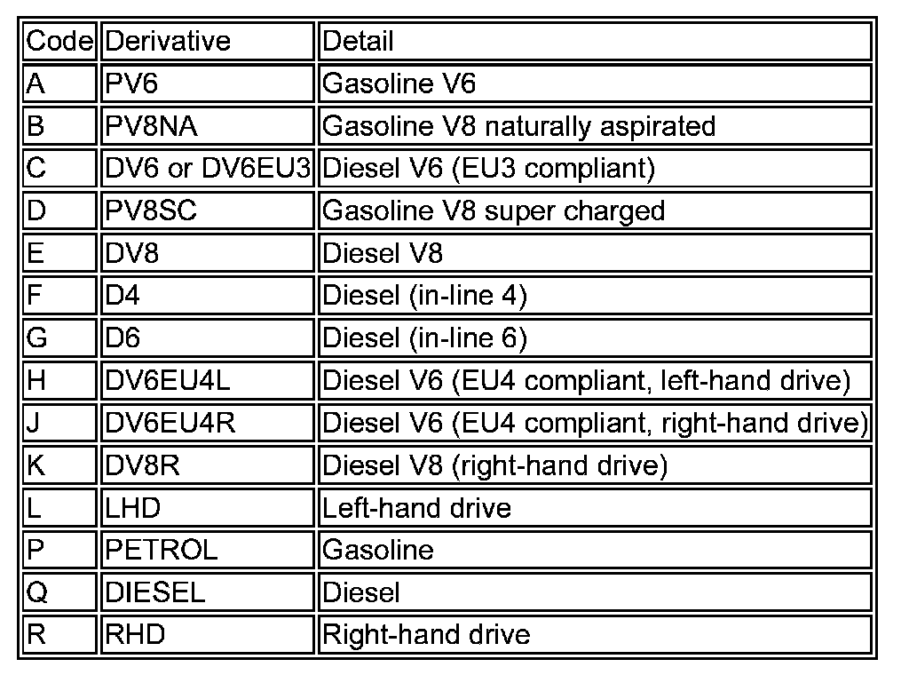 To provide more accurate connector information, in some instances, a suffix has been added to the connector that identifies the vehicle harness derivative; refer to the Connector number suffix table below.