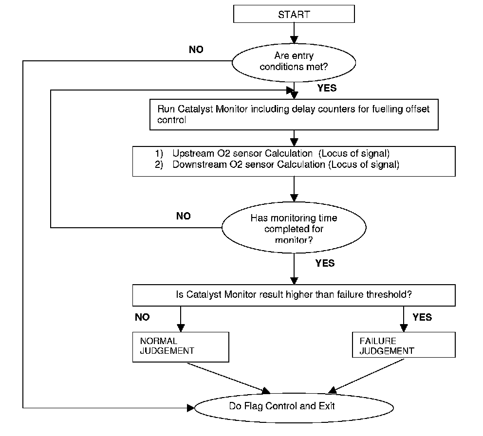 If the accumulated count is lower than a calibratable threshold then the catalyst diagnostic test has been passed. If the accumulated count equals or exceeds the calibratable threshold then the catalyst system has a problem and the appropriate DTC will be stored.