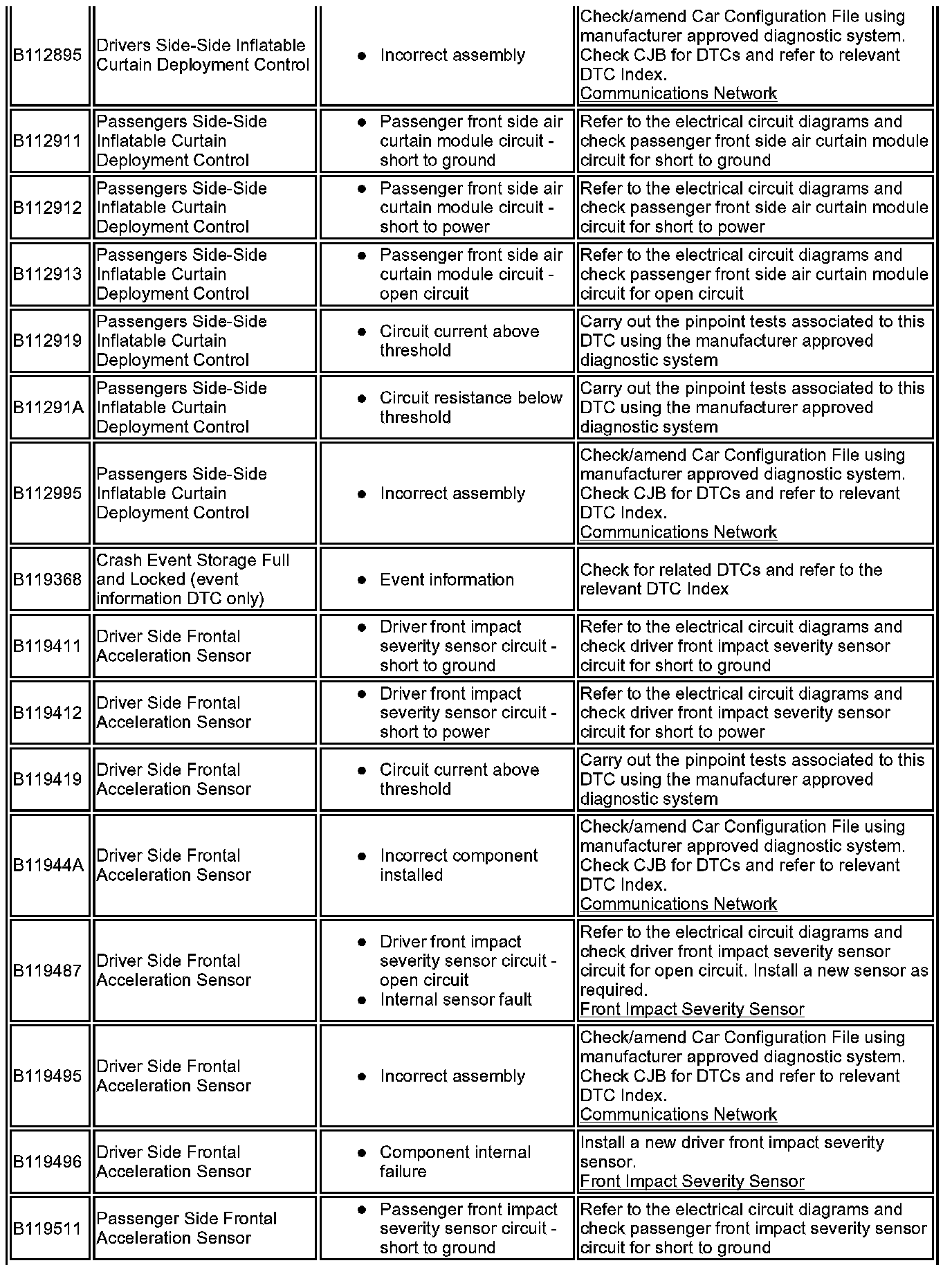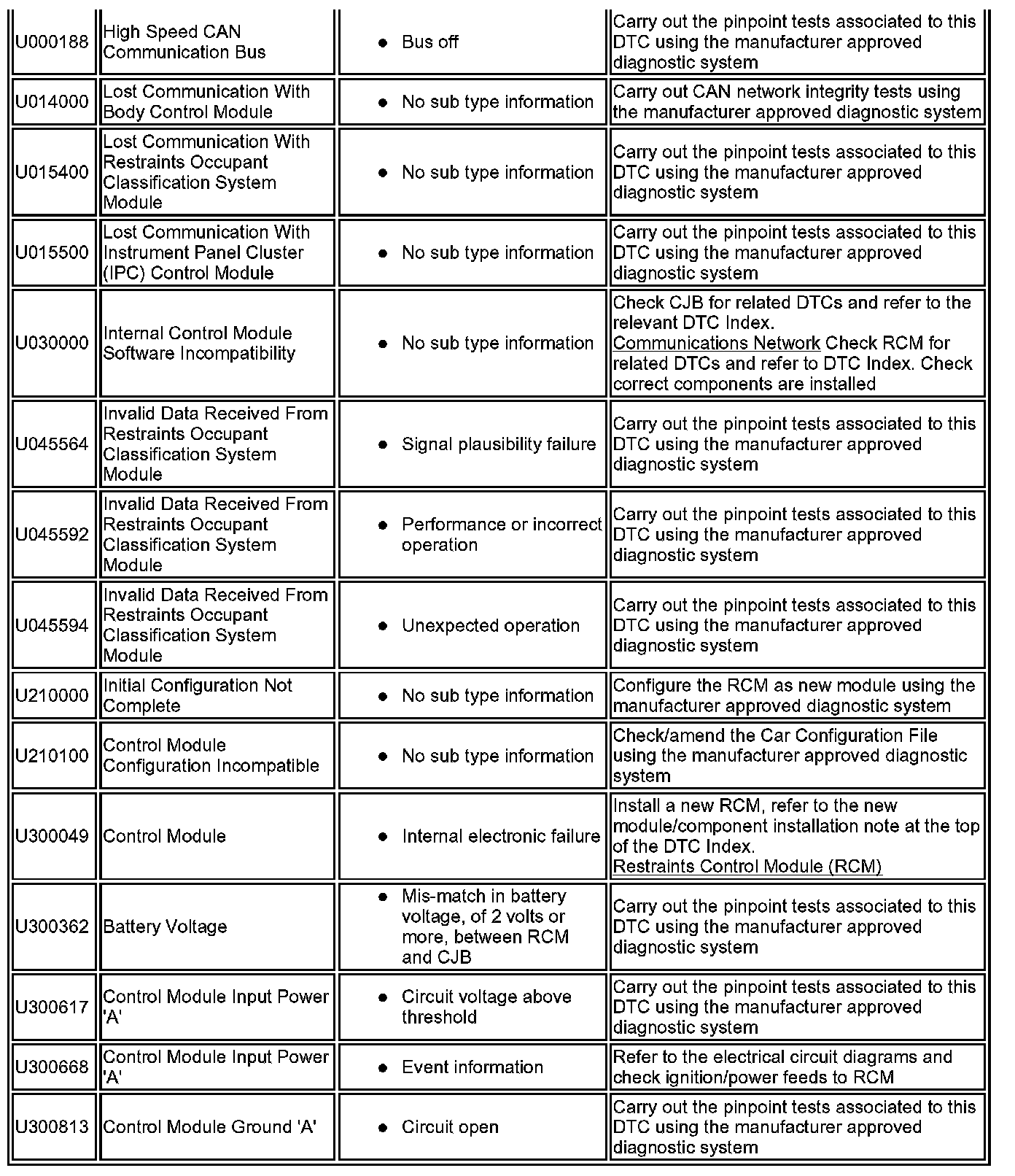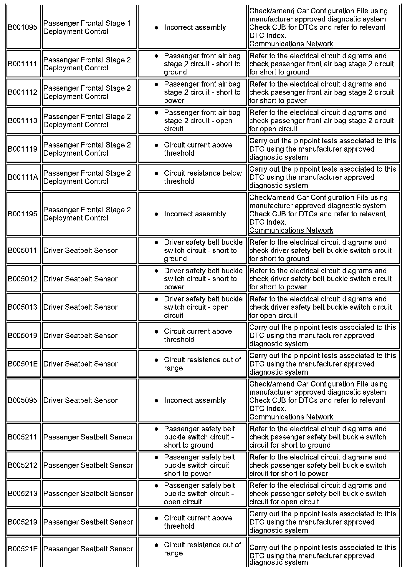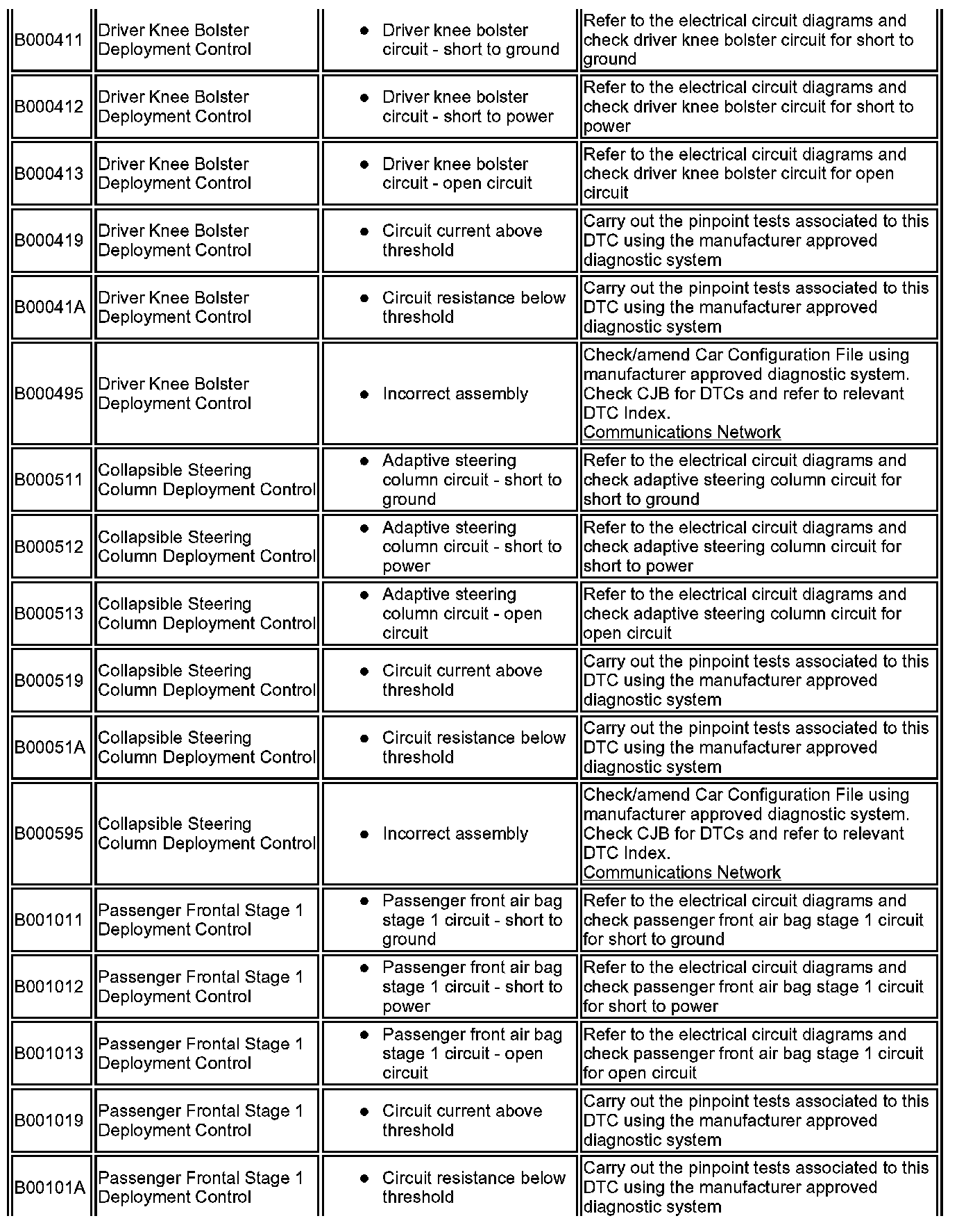 ^ Generic scan tools may not read the codes listed, or may read only five digit codes. Match the five digits from the scan tool to the first five digits of the seven digit code listed to identify the fault (the last two digits give additional information read by the manufacturer approved diagnostic system).