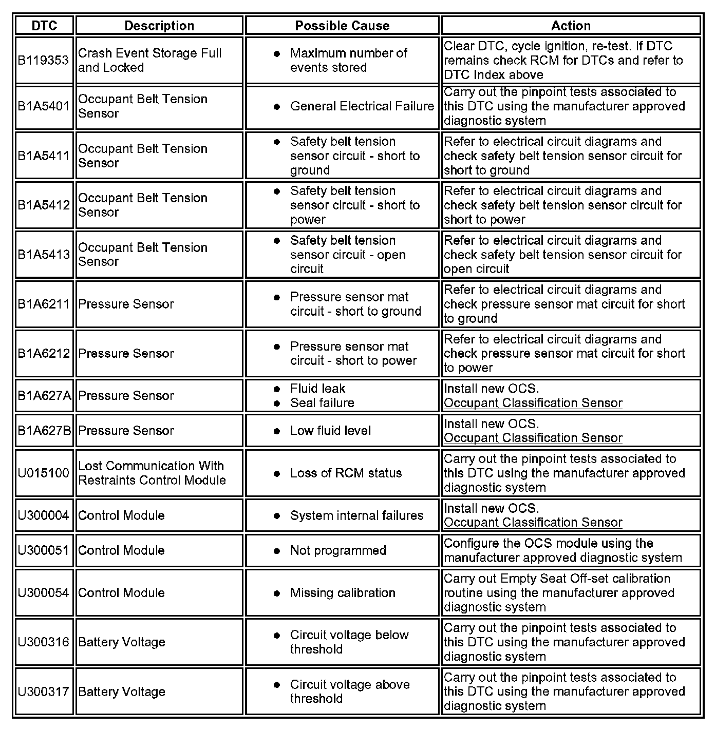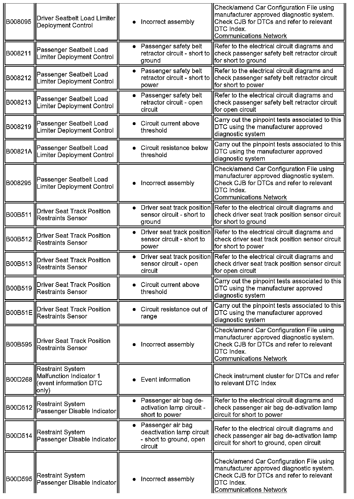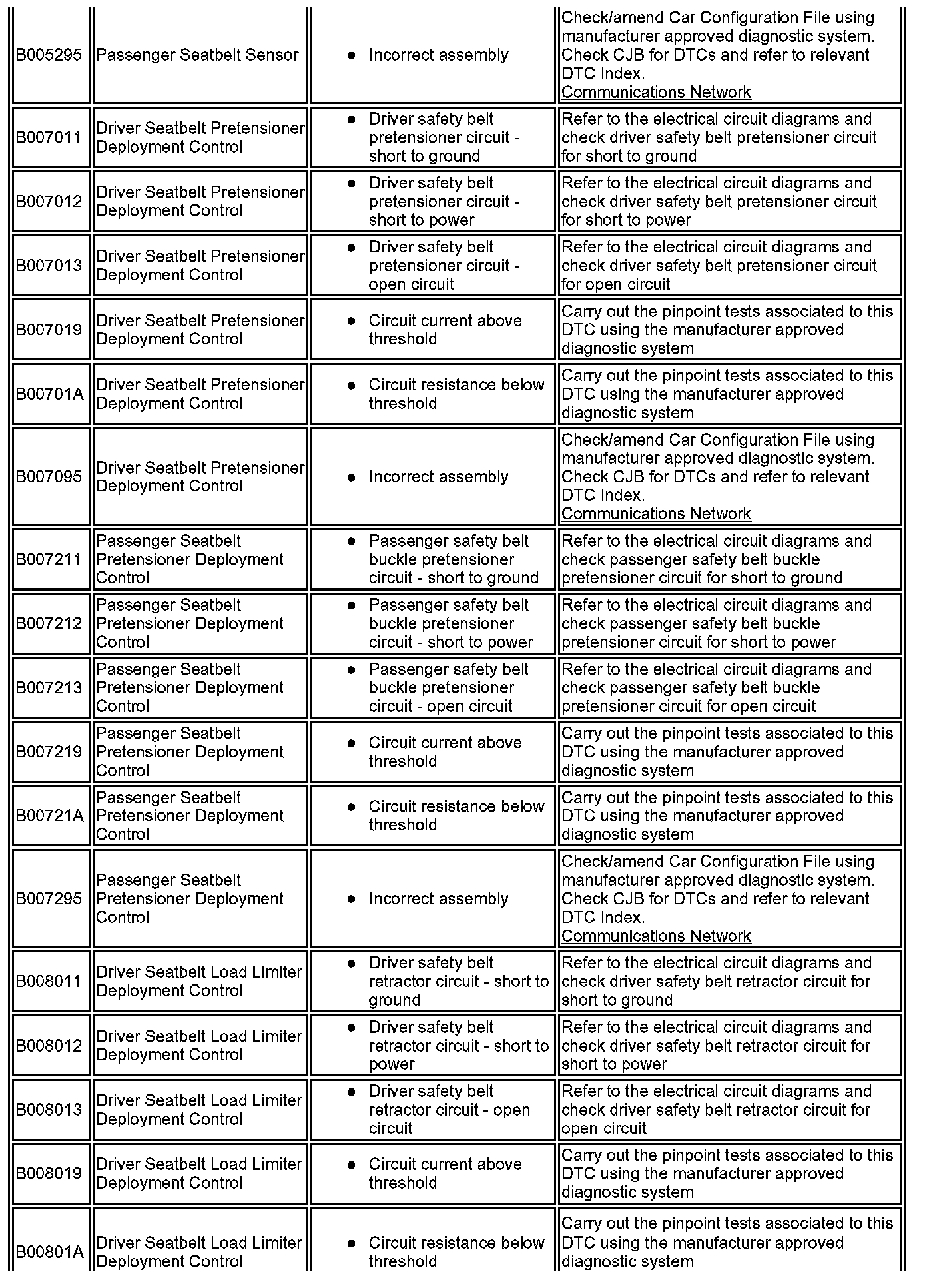 ^ Generic scan tools may not read the codes listed, or may read only five digit codes. Match the five digits from the scan tool to the first five digits of the seven digit code listed to identify the fault (the last two digits give additional information read by the manufacturer approved diagnostic system).