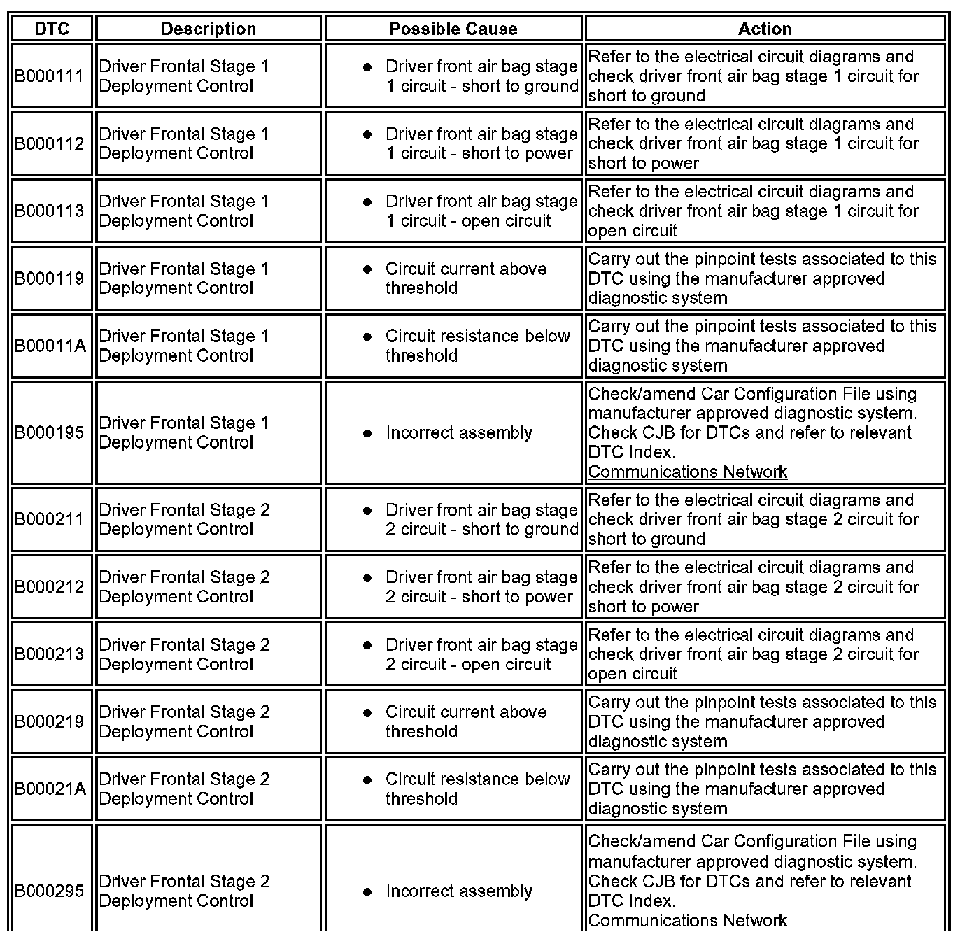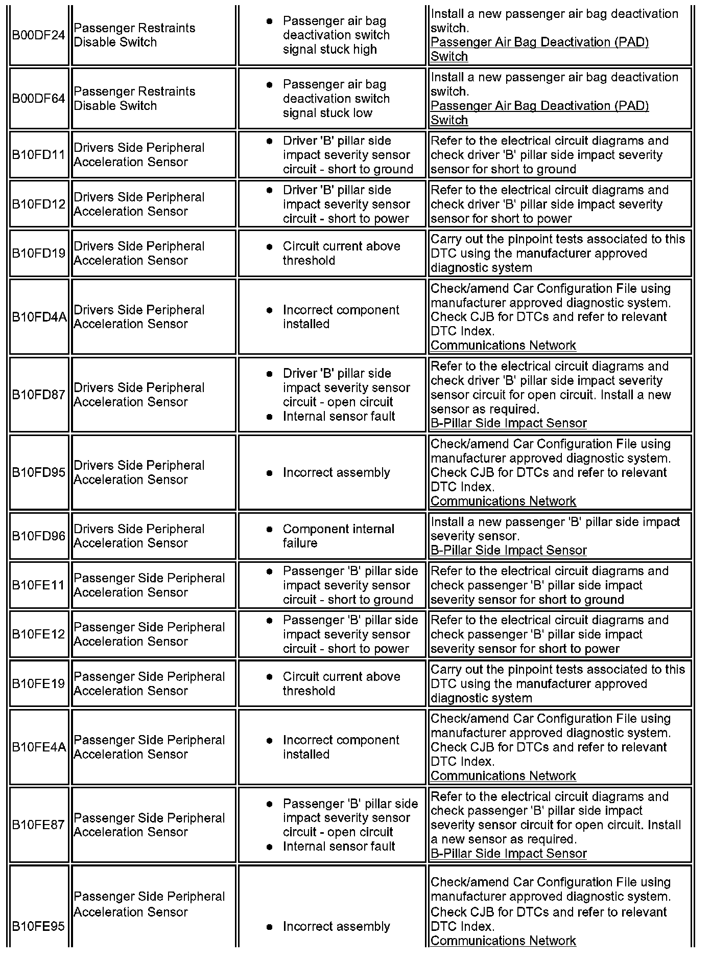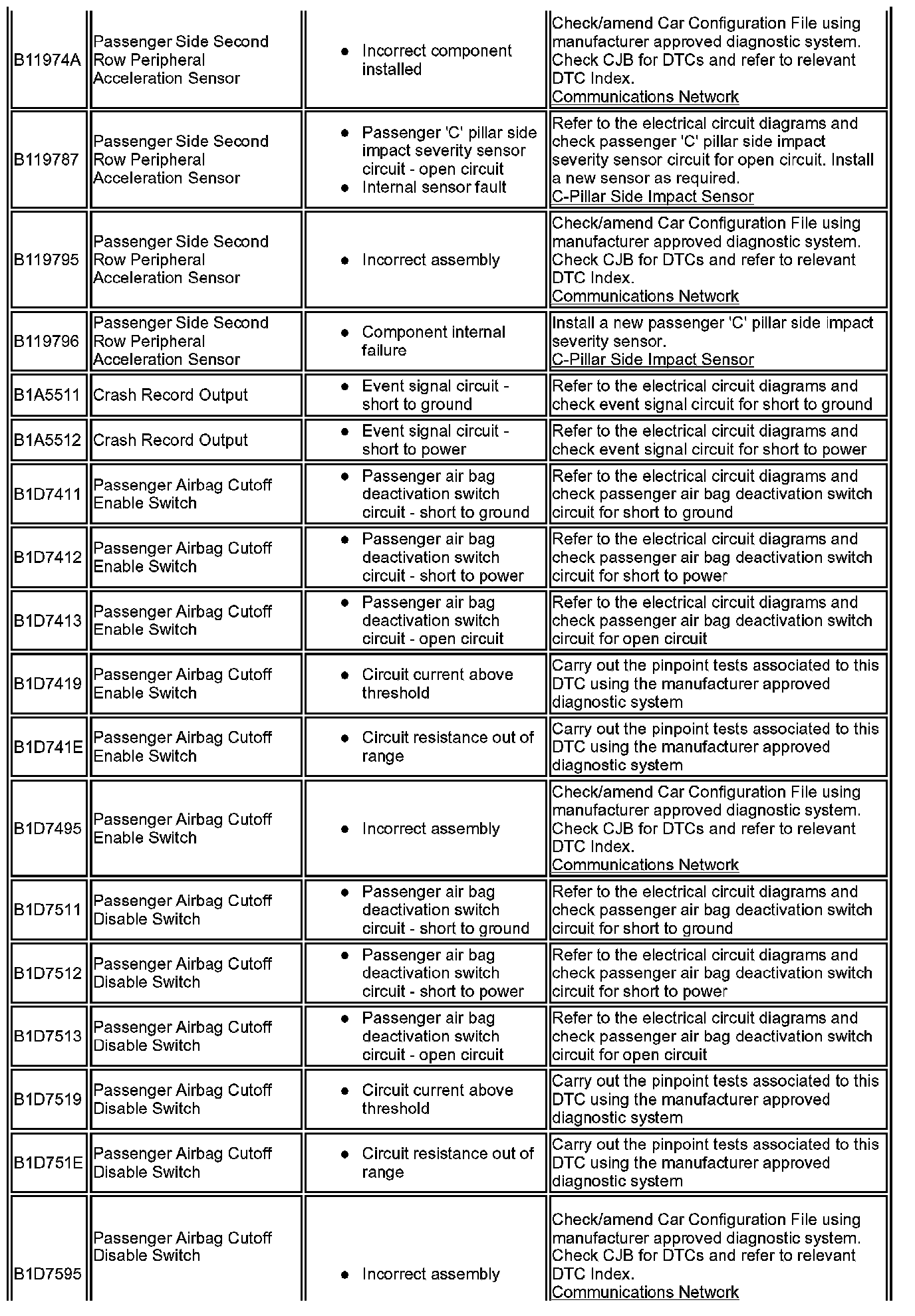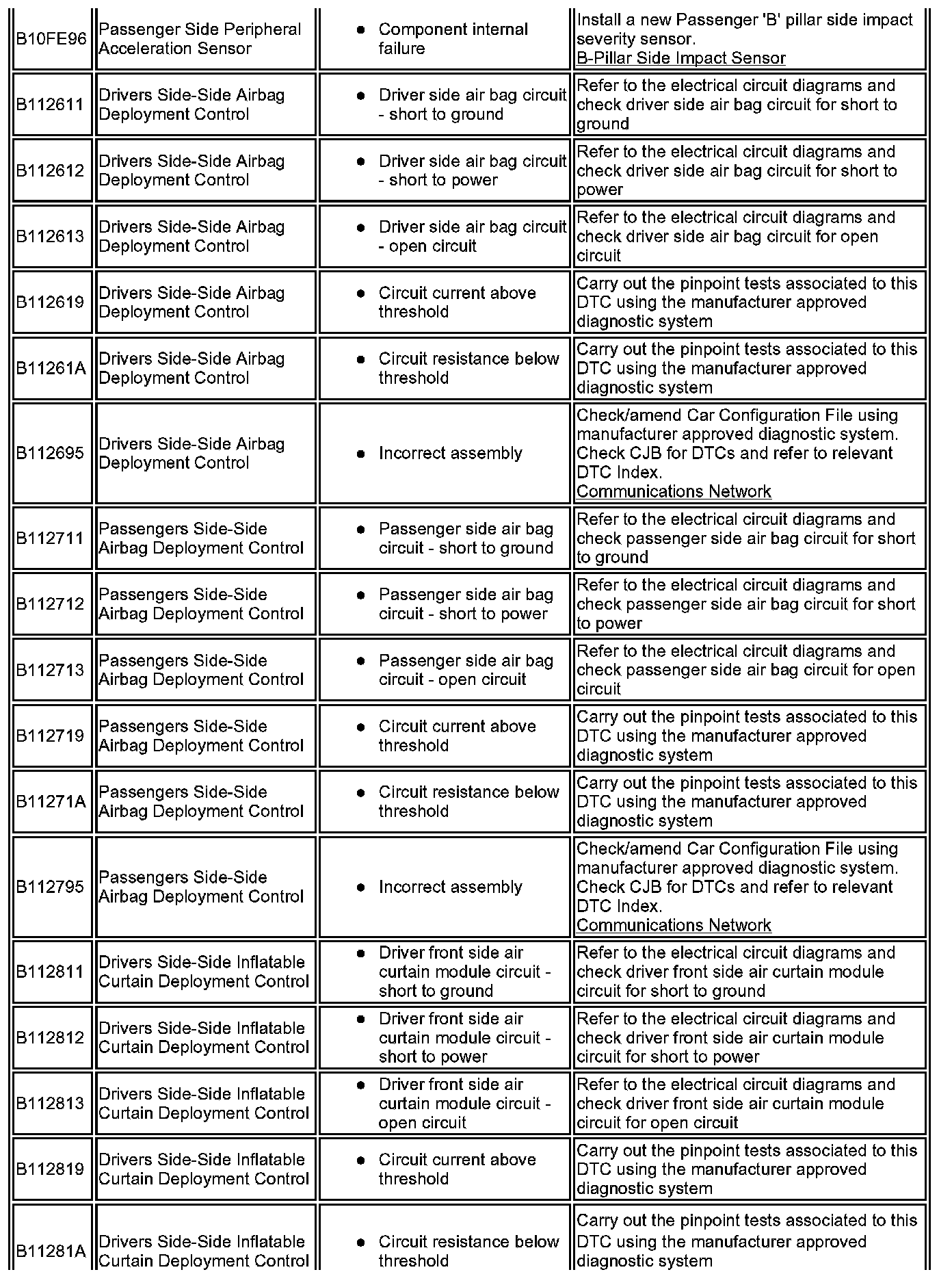 ^ Generic scan tools may not read the codes listed, or may read only five digit codes. Match the five digits from the scan tool to the first five digits of the seven digit code listed to identify the fault (the last two digits give additional information read by the manufacturer approved diagnostic system).