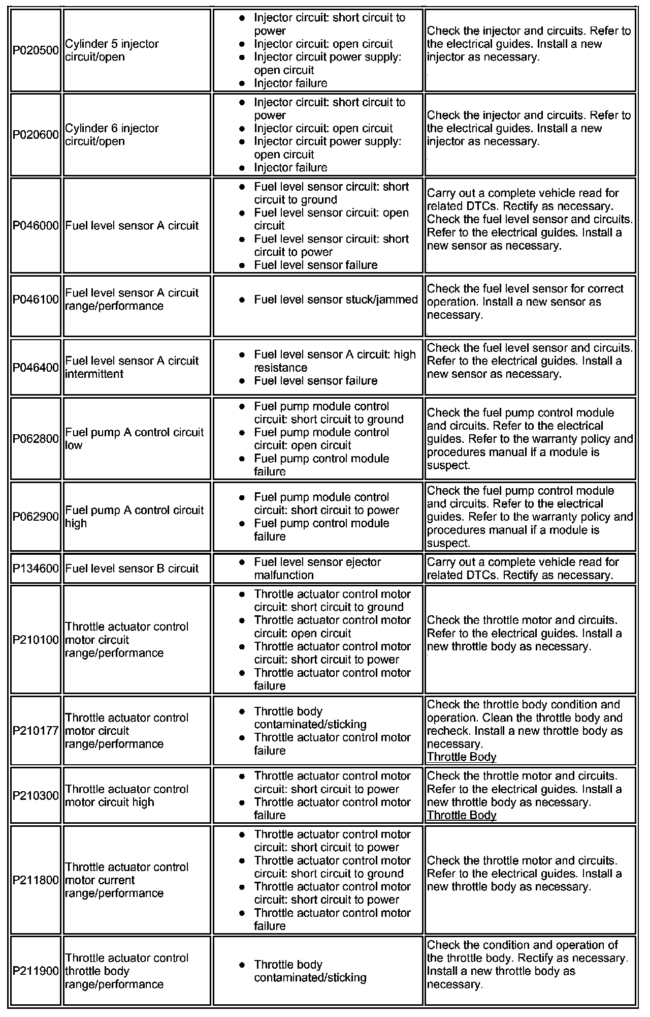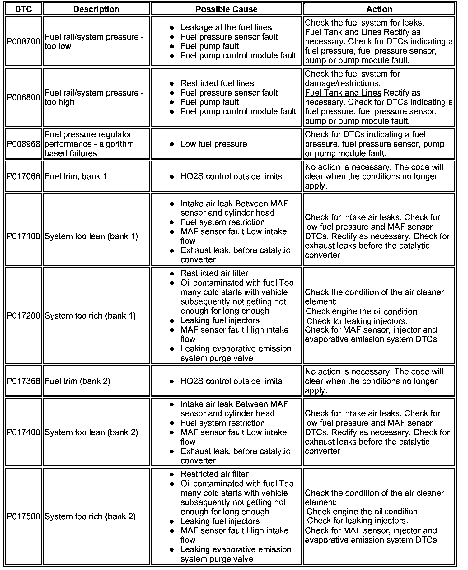 ^ Generic scan tools may not read the codes listed, or may read only five digit codes. Match the five digits from the scan tool to the first five digits of the seven digit code listed to identify the fault (the last two digits give extra information read by the manufacturer-approved diagnostic system).
