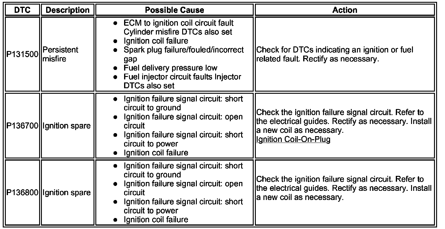 ^ Generic scan tools may not read the codes listed, or may read only five digit codes. Match the five digits from the scan tool to the first five digits of the seven digit code listed to identify the fault (the last two digits give extra information read by the manufacturer-approved diagnostic system).