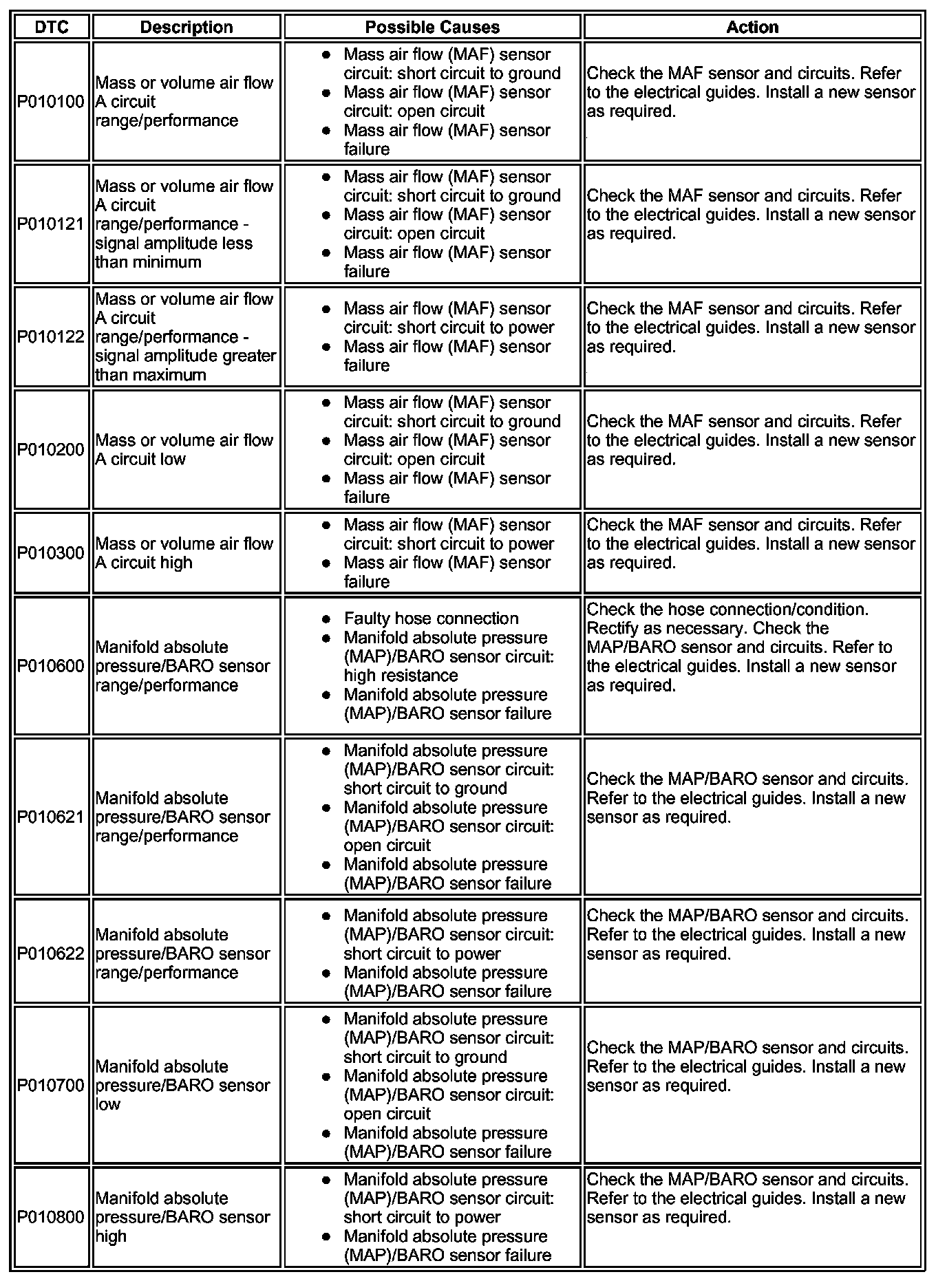 ^ Generic scan tools may not read the codes listed, or may read only five digit codes. Match the five digits from the scan tool to the first five digits of the seven digit code listed to identify the fault (the last two digits give additional information read by the manufacturer approved diagnostic system).