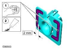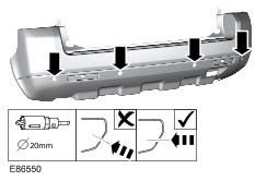 5. CAUTION: To avoid excess adhesive being pushed through the cut bumper hole when fitting the trims, ensure the adhesive is applied as illustrated.