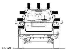 1. With the liftgate closed, check the alignment of the liftgate to the roof panel and bodyside panel. The liftgate should be central in its aperture.