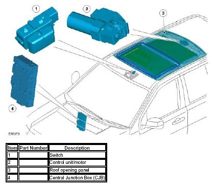 The roof opening panel will only operate when the vehicle is in power mode 6 (ignition on). Power is supplied to the roof opening panel control unit/motor by the CJB, which supplies both a permanent battery and ignition power supply. The CJB also provides a vehicle speed signal to the control unit.
