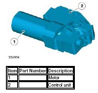 The combined control unit and motor assembly is mounted behind the headlining, to the rear of the roof opening panel. The control unit uses inputs from the CJB and the roof opening panel switch to control operation of the motor.