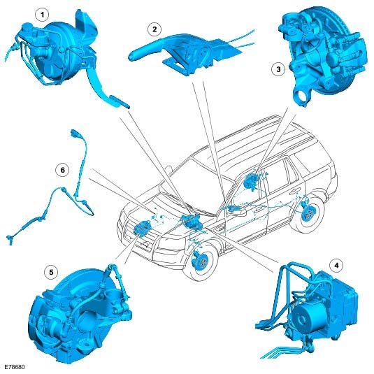 The 3.2L i6 vehicle is installed with ventilated front and rear brake discs. The 2.2L TD4 vehicle is installed with ventilated front and solid rear brake discs. Both the i6 and TD4 vehicles feature single piston, sliding calipers on all brake discs.