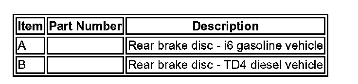 The ventilated type brake disc is 302 x 20 mm (11.89 x 0.79 in) in diameter and installed to the 3.2 liter i6 gasoline vehicle. The solid type brake disc is 302 x 12 mm (11.89 x 0.47 in) in diameter and installed to the 2.2 liter TD4 diesel vehicle. The brake disc is secured to the wheel knuckle hub with a single screw and is also retained by the 5 wheel securing nuts.