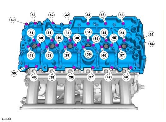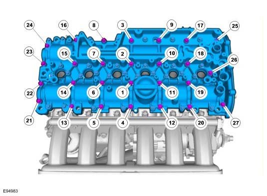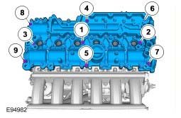 Using the sequence illustrated, tighten the valve cover to cylinder head bolts evenly and progressively a few turns at a time, until there is full contact.