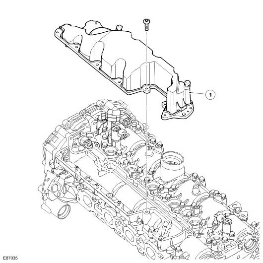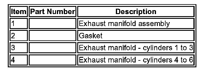 The exhaust manifold comprises 2 separate manifold assemblies. One manifold is used for cylinders 1 to 3 and the second manifold is used for cylinders 4 to 6. The manifolds are sealed to the cylinder head with a gasket and secured with 14 bolts.