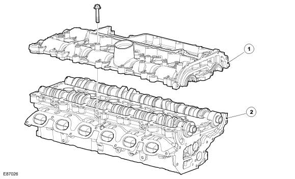 The chill cast cylinder head is of the cross-flow type, manufactured from a light-alloy metal. Deep-seated bolts, to reduce distortion, secure the cylinder head to the cylinder block. Two hollow locating dowels align the cylinder head with the cylinder block. The 2 camshafts are supported by 7 bearing caps each, directly in the cylinder head and camshaft cover.