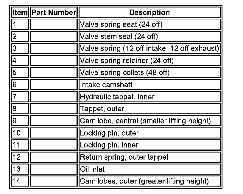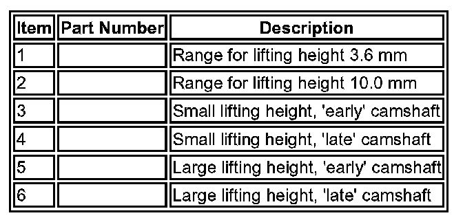 The intake camshaft has cam lobes with different profiles. One for a small lifting height of 3.6 mm, and 1 for larger lifting height of 10.0 mm. The transition between the lifting heights is controlled via the Camshaft Profile Switching (CPS) function.