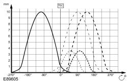 ^ Opening angle, 10.0 mm lifting height: Crankshaft degrees - 240° Crankshaft degrees - 120°