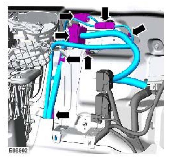8. Connect the 5 electrical connectors to the CJB and secure the front carpet.