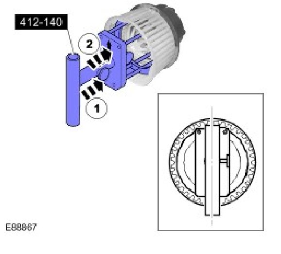 15. With the marking upwards, use the guide to install the remainder of the special tool to the blower motor.