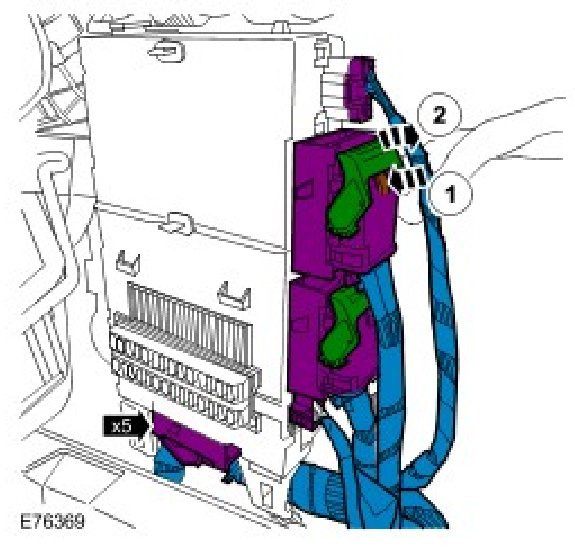 13. Connect the 5 electrical connectors to the CJB and secure the front carpet.