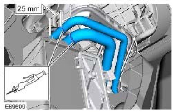 19. Guide the cut evaporator pipes through the bulkhead so that approximately 20 mm is visible in the engine compartment.