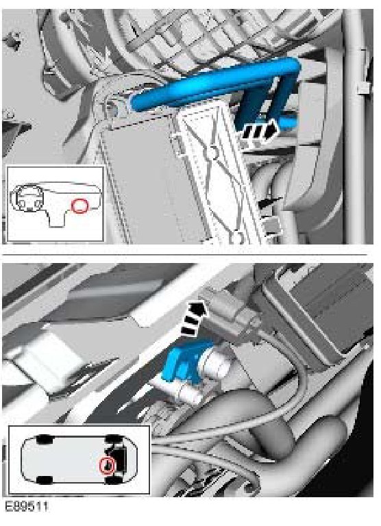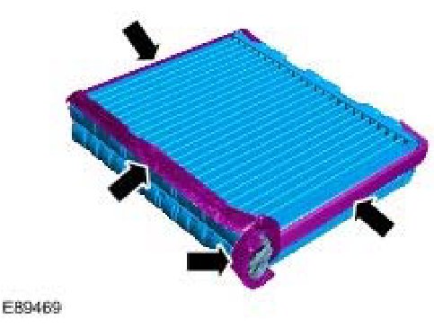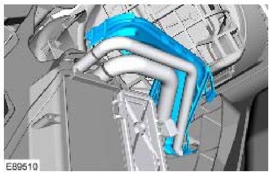 NOTE: The removal of this component involves cutting an aperture in the evaporator housing wall and cutting through the high and low pressure A/C lines. A service repair kit is supplied to cover this procedure.