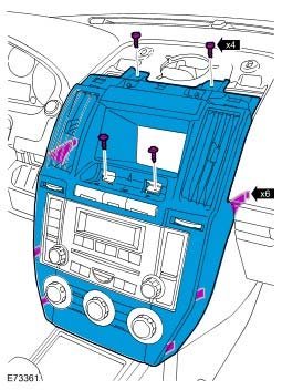 1. Install the instrument panel console switch assembly and tighten the Torx screws to 3 Nm (2.2 ft. lbs.).