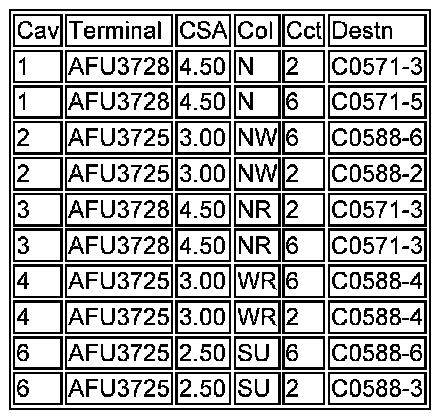 1. Cav: The connector pin (cavity) number.