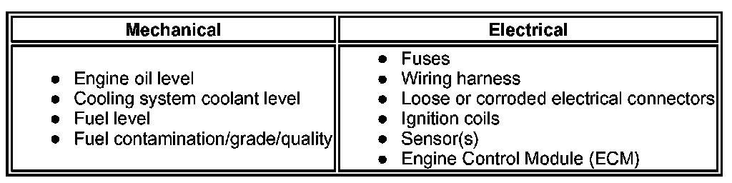 4. If the cause is not visually evident, verify the symptom and refer to the Symptom Chart, alternatively, check for Diagnostic Trouble Codes (DTCs) and refer to the DTC Index.