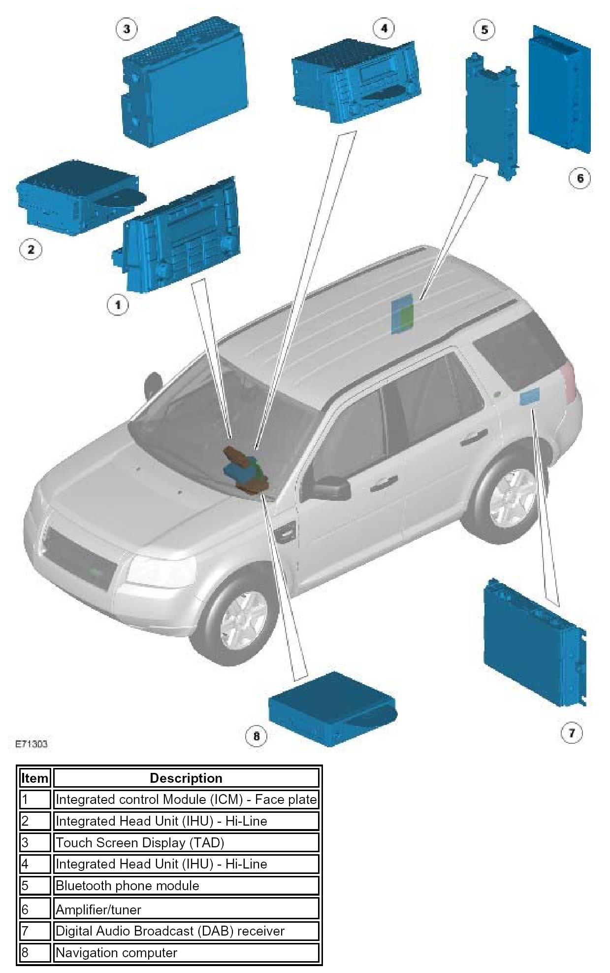 The entertainment system components are connected on a fiber optic MOST system. The MOST system can send and receive information to/from the other network systems via a 'gateway' in the Integrated Control Module.