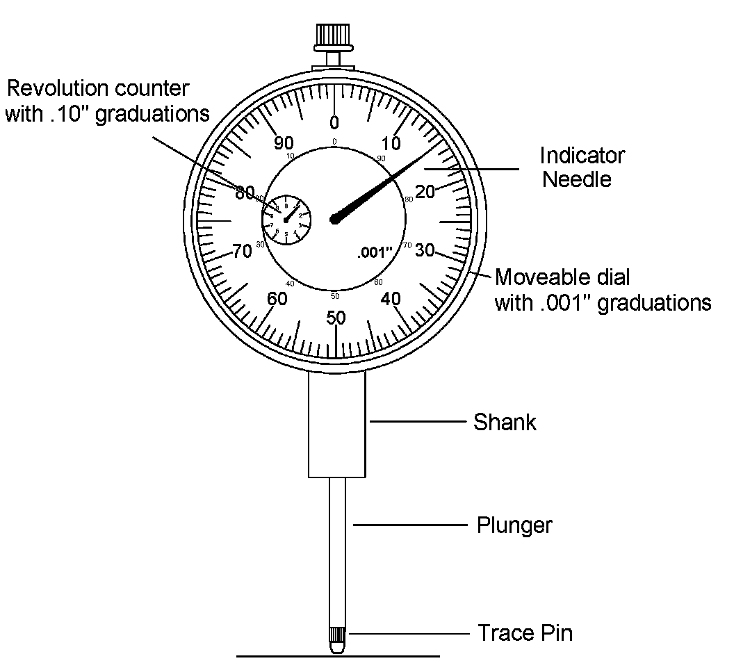 The illustration below shows a typical S.A.E. dial indicator and the names of some of its parts.